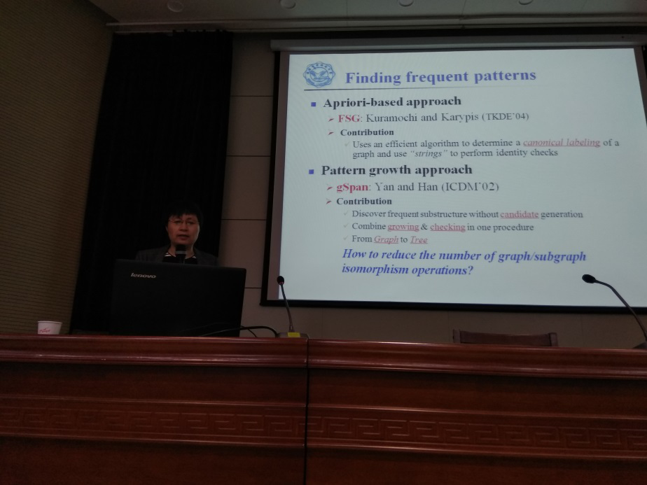 2018年4月25日,我校计算机学院邀请到西安电子科技大学高琳教授做《基于图的生物数据模式挖掘》的胡杨林大讲堂,高教授就当今生物癌变研究与大数据挖掘相结合的内容做了详细讲解,计算机院全体师生积极参加并与高教授进行了互动。最后马天院长宣布报告会圆满结束,我校学生从中受益匪浅,对生物数据挖掘有了一定的认识与了解。