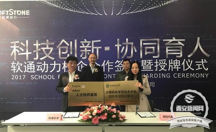 2017年11月13日,西安七所高校与软通动力信息技术(集团)有限公司在西安•沣东新城协同创新港学研广场举行了“校企合作人才培养签约暨授牌仪式”。西安科技大学计算机学院贾澎涛副院长出席本次签约暨授牌仪式,并代表计算机学院和软通动力信息技术(集团)有限公司签订校企合作协议。本次与软通动力的签约合作,将助力于校企双方就人才培养、师资培训、实验室建设等方面的进一步合作与深入。