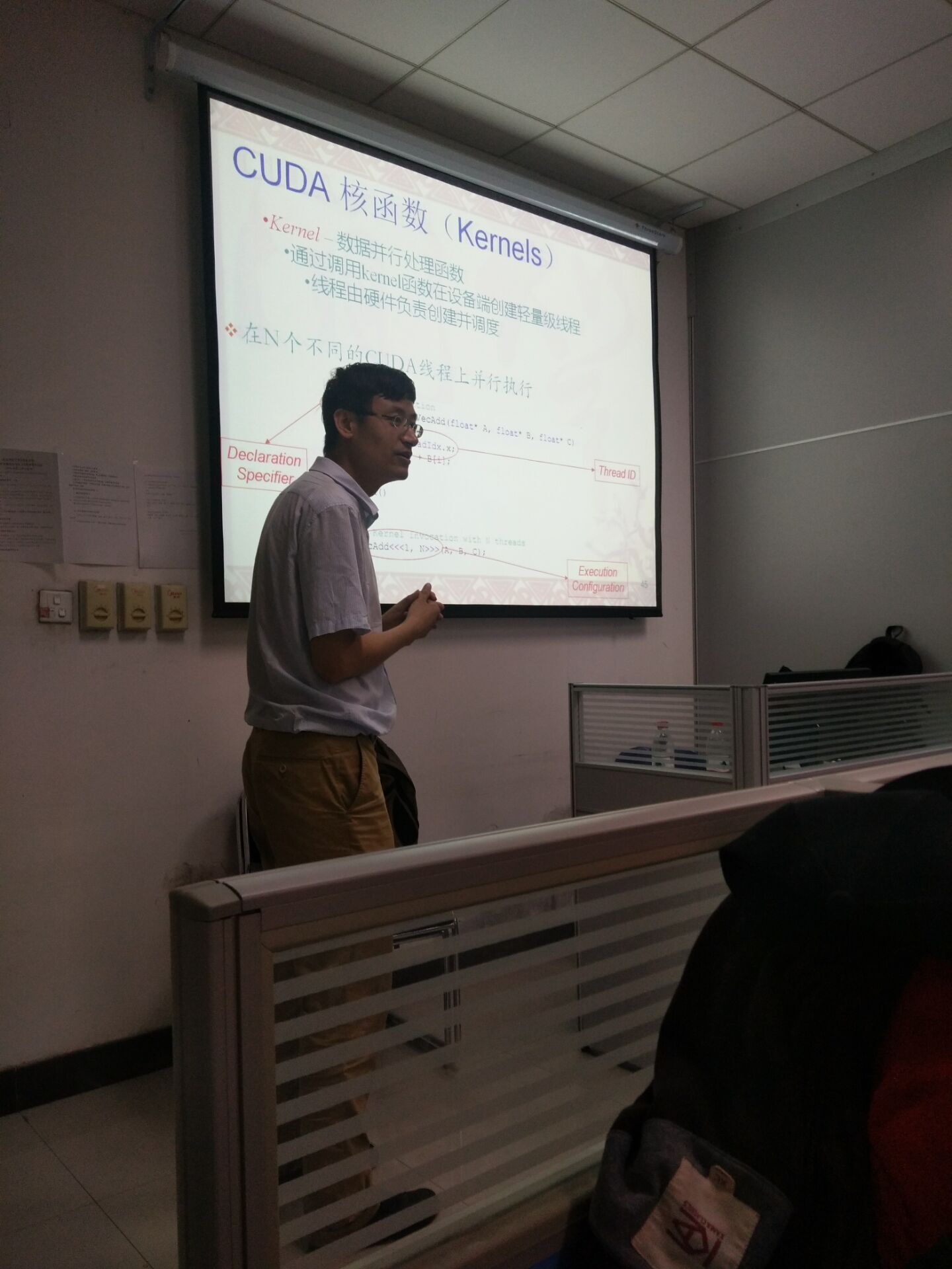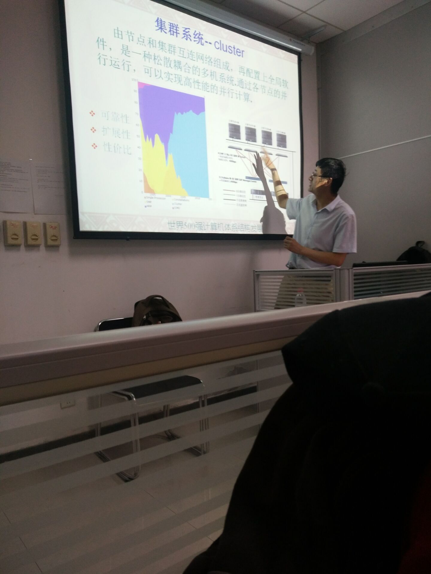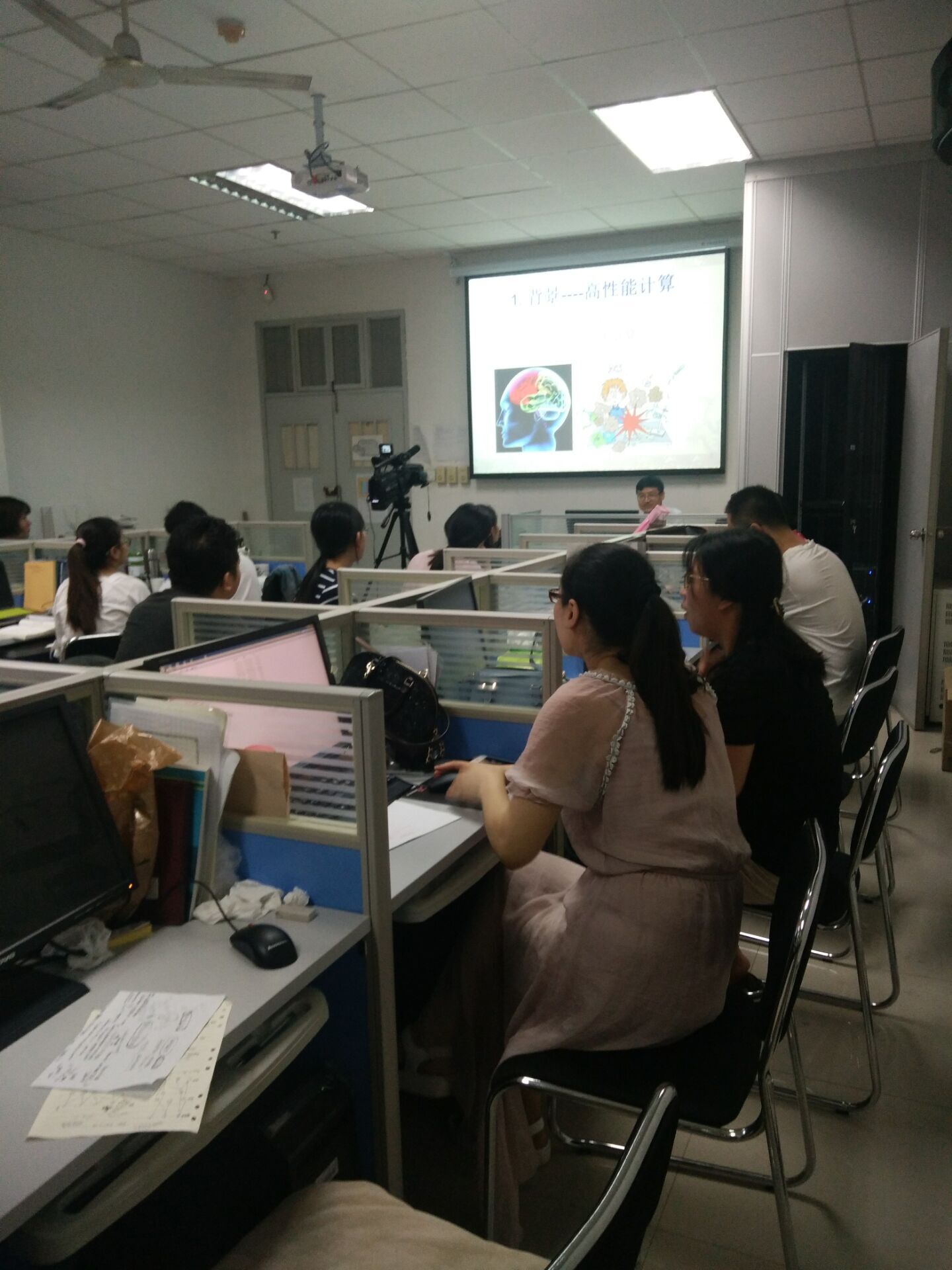 2017年7月12日上午,在学院高性能并行计算实验室(409实验室)由西安电子科技大学朱虎明老师作了题为“高性能计算与深度学习”的报告,在报告中,朱老师针对高性能计算问题和深度学习算法实现过程中的问题进行了具有针对性的讲解,细致的阐述了相关理论,详细的说明了操作步骤。最后,朱老师和相关领域老师、学生进行了互动交流,学生反映良好,希望以后有更多这样的交流和学习机会。