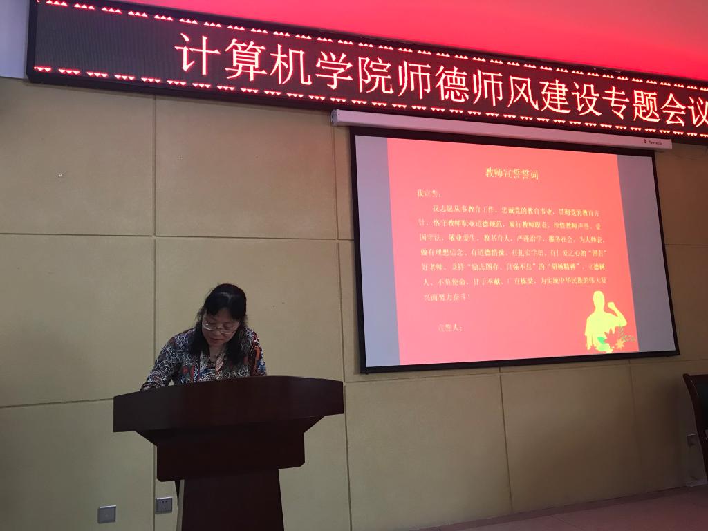 会议还举行了教师宣誓仪式,全院教职工在马天副院长的带领下进行了宣誓。同时各系部派代表签订了师德承诺书。