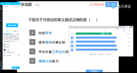 在线教学已经进行了五周,马老师的《虚拟现实技术》和《数据可视化》课程的课堂气氛活跃,同学们连麦发言讨论积极,答题交互参与率93%以上,聊天区的文字互动活跃,章节单元测试成绩约90%以上。