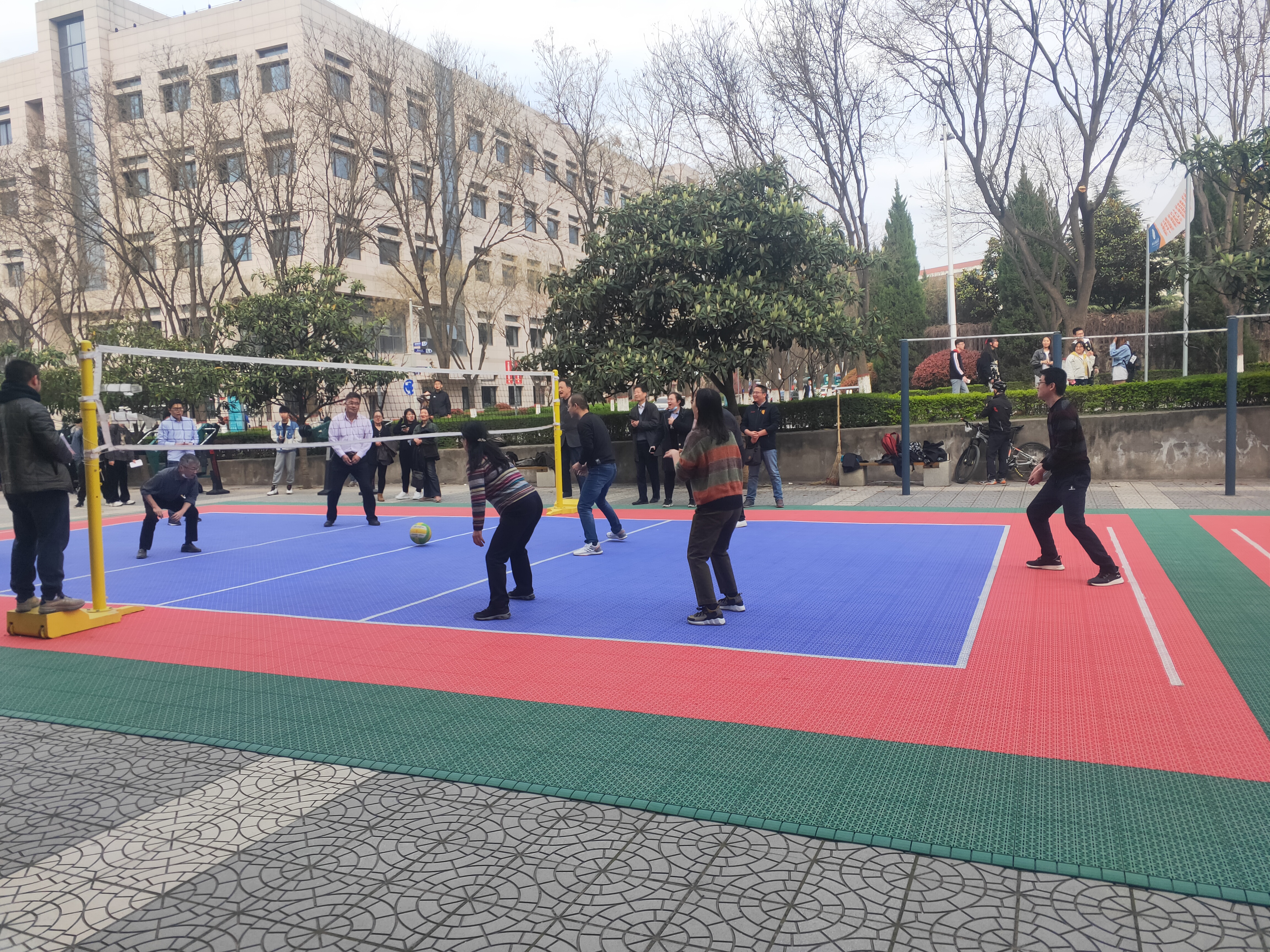 为庆祝建党100周年,丰富教职工文体活动,增进合作交流,3月24日下午,计算机学院在临潼校区体育馆排球场举行“庆祝建党百年,教工气排球活力赛”。计算机学院全体教职工参加比赛。