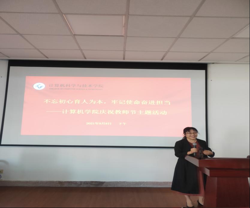 根据教育部“赓续百年初心,担当育人使命”主题教师节庆祝活动要求,落实校党委、校行政迈进“十四五”、创新性开展教师节庆祝活动具体安排,发挥先进榜样示范效应,教育引导广大教师坚守育人初心,担当时代使命,落实立德树人见行动,9月8日下午,计算机学院在临潼校区15教323会议室,举行“立足本职担责任,拼搏创绩我示范”经验分享会,浓重庆祝第37个教师节。会议由党委书记冯爱玲主持,计算机学院全体教职工参加。