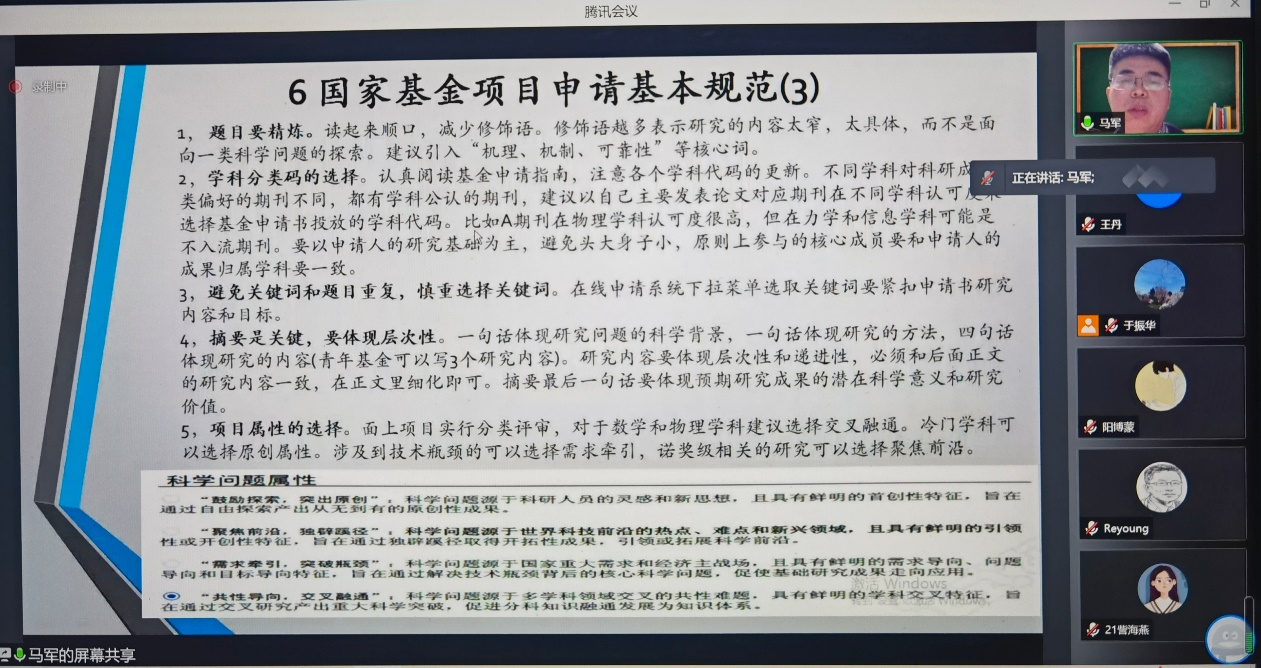 2021年12月5日,应计算机学院副院长于振华教授邀请,兰州理工大学马军教授为计算机学院全体师生做了一场别开生面的学术报告。报告采用腾讯会议的形式进行,学院百余名师生认真听取了报告并在会后与马军教授进行热烈的沟通和探讨。