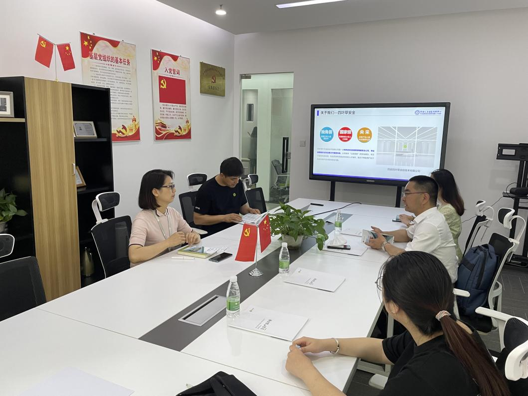 为落实学校“访企拓岗”专项行动有关精神,进一步推动毕业生就业工作,拓展大学生实习实训平台,加强校企产学研合作,5月25日下午,计算机学院党委副书记陈伟伯、毕业班辅导员刘伟轩、2022届毕业生代表一行4人,来到西安四叶草信息技术有限公司和西安高新区丝路创新谷物业管理有限公司走访交流。