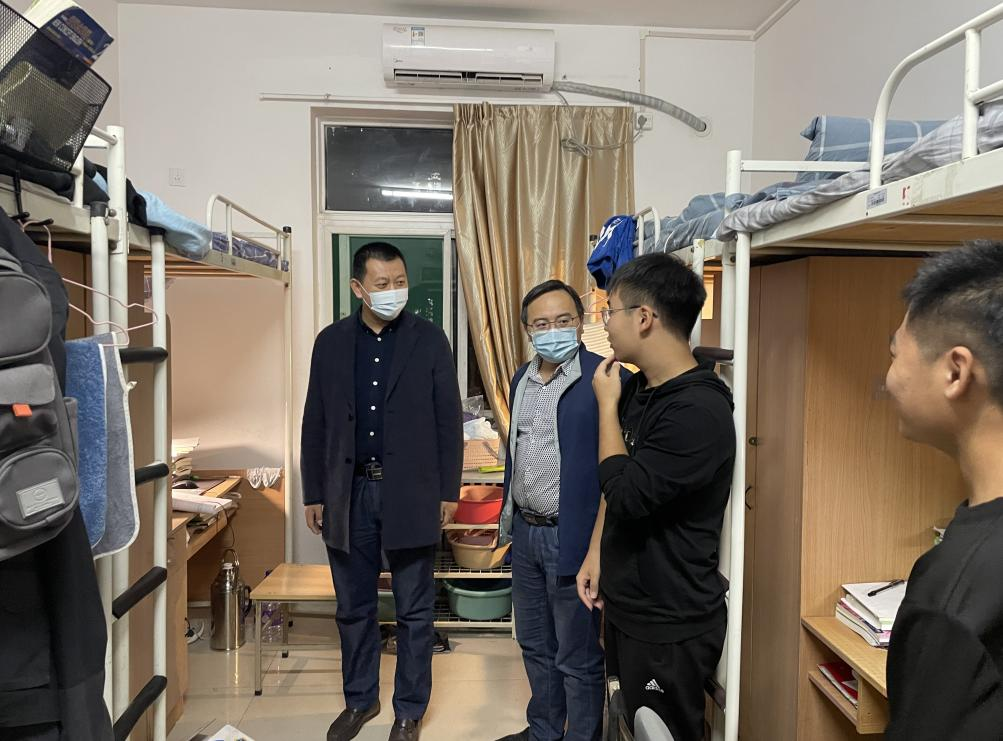 在走访宿舍的过程中,李绥波一行详细了解了大一新生的生活、学习状态,询问学生遇到的实际困难和问题,并叮嘱同学们在疫情防控期间一定要认真做好个人防护,遵守学校疫情防控各项规定,合理安排时间、规律生活。