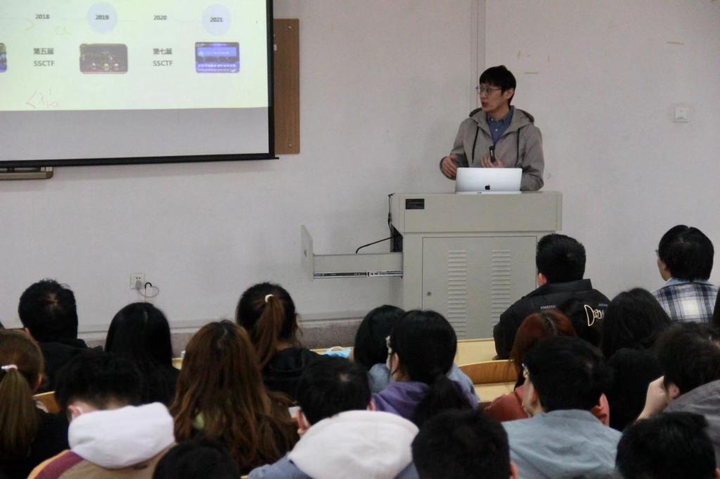 会上,孙宇简要介绍了企业基本概况,对现阶段人才需求情况进行了说明;公司高级攻防演练工程师凯文从“什么是网络安全”“黑客如何攻击网络”“网安就业前景如何”和“学习网安能做什么”四个方面进行了详细讲解,通过研究数据展示了网络安全领域的发展趋势以及人才缺口,进一步介绍了网安发展前景和网安专业学习方法,鼓励同学们努力学习专业知识,为网络安全行业贡献力量。