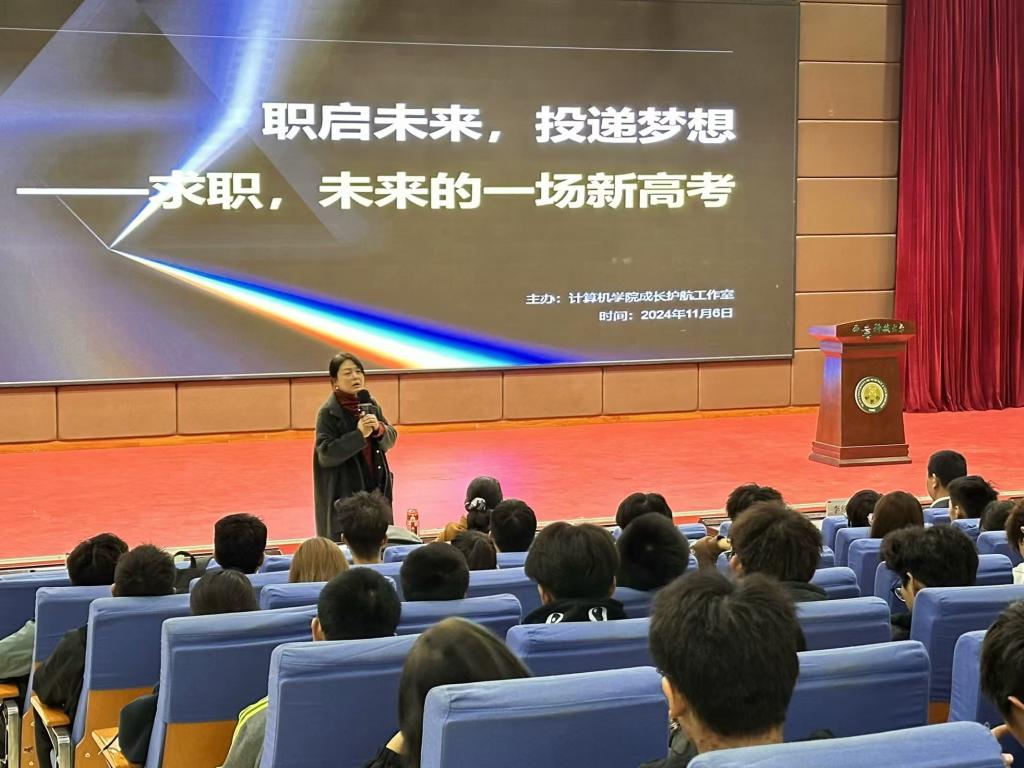 为了让大一学生提前明确方向、规划学业,为未来求职奠定基础。11月6日,“计算机学院成长护航工作室”在煤科楼一楼报告厅举办了“职启未来,投递梦想——求职,未来的一场新高考”主题报告会。西安比特教育科技有限公司负责人及公司就业指导师代表出席活动,学院党委书记李绥波、学生竞赛指导教师史晓楠、就业指导教师靳玉萍老师、辅导员宋永强及全体大一新生参加活动。