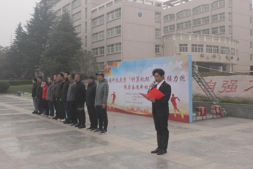 11月23日,由校体育运动委员会、校团委、体育部主办,计算机学院团委承办的“计算机杯”环道接力跑活动在临潼校区骊山校园举办。驻校纪检监察组副组长贾斌、计算机学院党委书记李绥波、体育部主任王华、建工学院党委副书记吕勤勇、计算机学院党委副书记郭胜忠,体育部、计算机学院教师代表、15个学院的参赛选手参加活动。