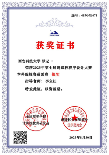 近日,由全国高等学校计算机教育研究会主办的2025年码蹄杯决赛落下帷幕,星空体育中国官方网站程序设计类竞赛教师指导团队带领学生参赛队伍在该赛事本科院校赛道荣获全国一等奖1项、二等奖2项,三等奖1项,获得该比赛迄今我校最好成绩。