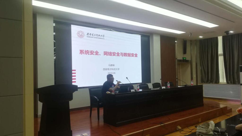 6月30日,西安电子科技大学马建峰教授应邀做客我校“胡杨林大讲堂”,作了题为《系统安全、网络安全与数据安全的研究进展》的学术报告。报告会由研究生院主办,计算机科学与技术学院承办,计算机学院副院长马天主持,全校150余名研究生及教师聆听了报告。