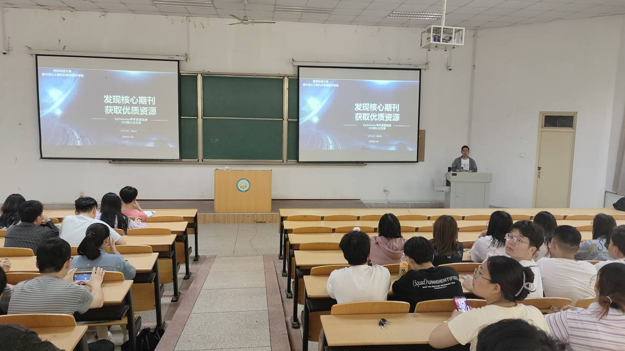 为拓宽文献检索及全文获取渠道,图书馆康虎兵老师应邀于2023年5月19日下午2:30在9号楼101为星空体育中国官方网站学生作题为《发现核心期刊,获取优质资源》的学术报告。报告会由计算机科学与技术学院承办,学院100余名研究生聆听了报告。