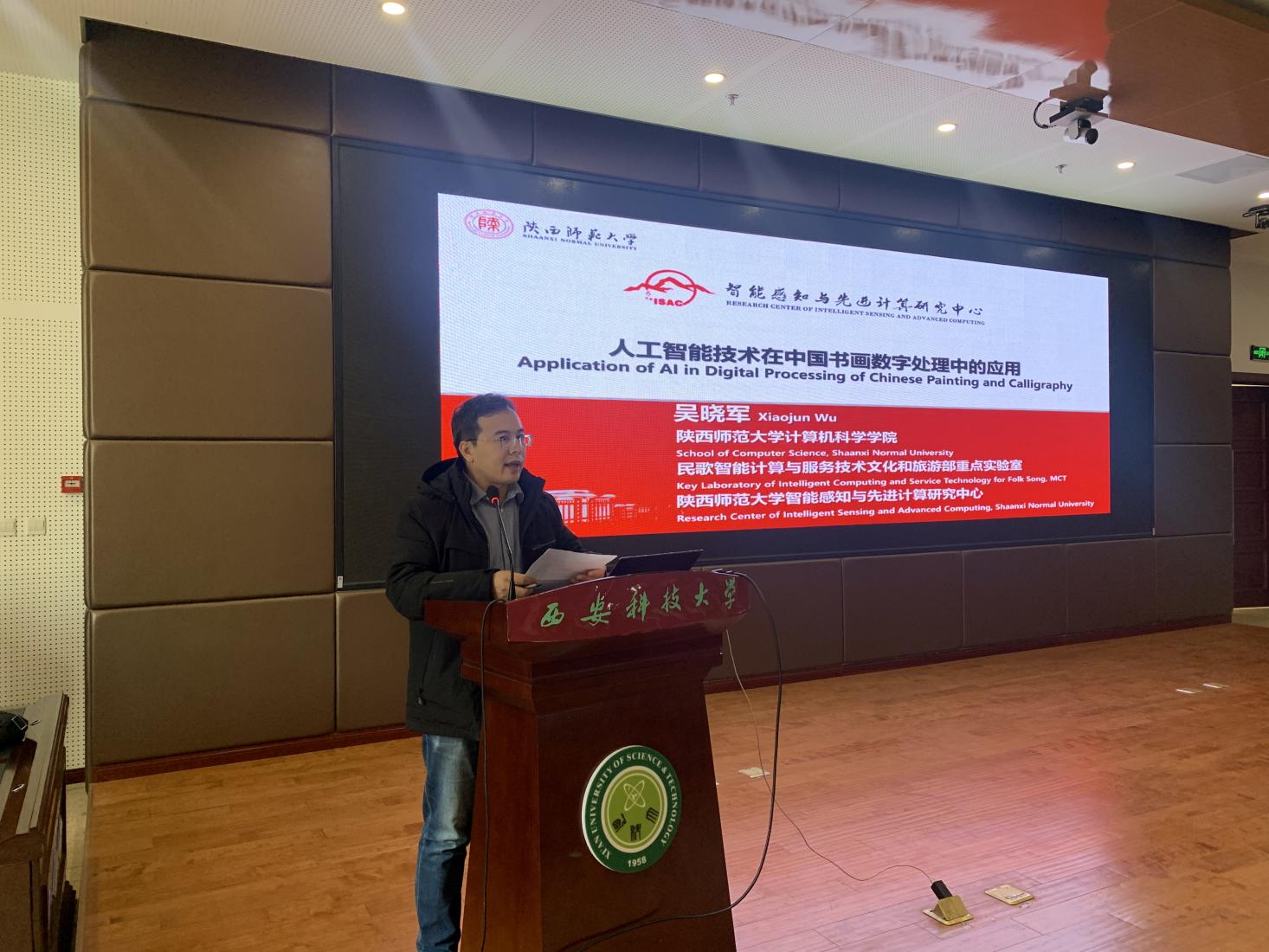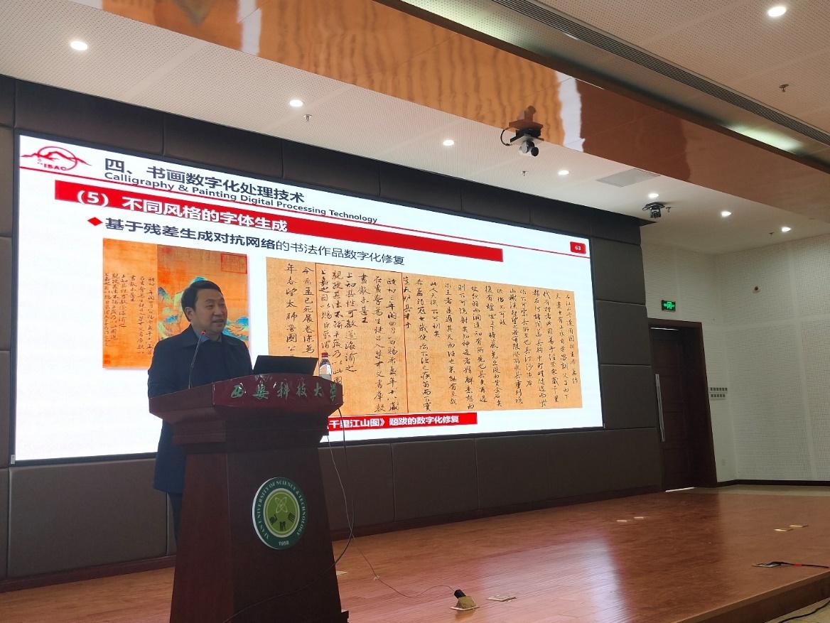 11月24日,陕西师范大学吴晓军教授应邀做客我校胡杨林大讲堂,作了题为《人工智能技术在中国书画数字处理中的应用》的学术报告。此次报告会由研究生院主办,计算机学院承办,计算机学院党委副书记郭胜忠主持,300余名研究生及教师聆听了报告。