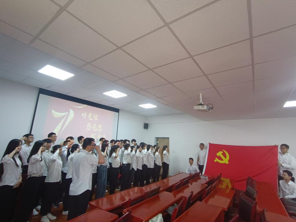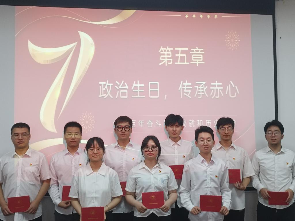 活动中,全体党员面对鲜红党旗高举右拳庄严宣誓,铿锵有力、饱含深情地再次作出“为共产主义奋斗终身”的庄严承诺;支部集中开展”学党史,强党性,传党魂”专题党课学习,通过学习建党节的由来、党徽的意义、中国共产党全国代表大会的光辉历程等内容重温党的历史,汲取奋进力量;9名新老党员代表跨越时间界限,重读入党志愿书,重温入党初心,表达了永远忠诚跟党走的理想信念;支部为党员代表过集体政治生日,赠送政治生日贺卡,勉励大家时刻不忘自己的“第一身份”,发挥先锋模范作用;支部书记指出,支部获评“西安科技大学先进基层党支部”是对支部前期工作的高度肯定,希望大家满怀信心、踔力前行、重整行装,争取更好成绩。