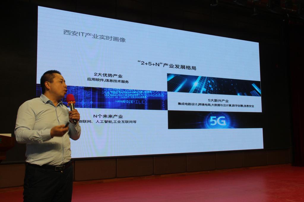 蔡鹏结合个人职业生涯经历,从西安IT产业实时画像(未来是什么)、西安IT人才圈层与链接(未来人才在做什么)、IT产业红利及人才红利变化(未来人才需求是什么)、IT大学生如何面向未来构建竞争力(今天我们怎么做)四个方面为同学们做了详实细致的讲解,勉励同学们做好职业规划、明确学习目标、脚踏实地、逐梦前行。