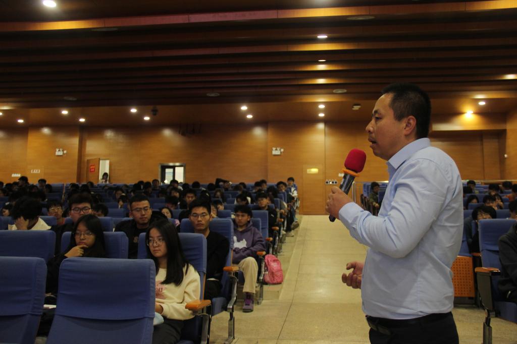 11月1日,计算机学院在骊山校园煤炭科技一楼报告厅举行“百千万工程”讲座暨立人大讲堂第十七讲,西安软件园人才服务负责人,西安市招才引智“校园引才特使”蔡鹏作了“逐光而行——泛IT专业大学生如何面向未来产业需求高效成长”的主题讲座。计算机学院党委副书记郭胜忠主持讲座,辅导员王兰、张珍珍、鞠纪元,学生代表400余人参与聆听。