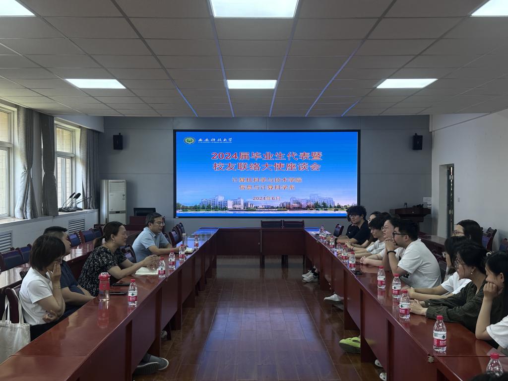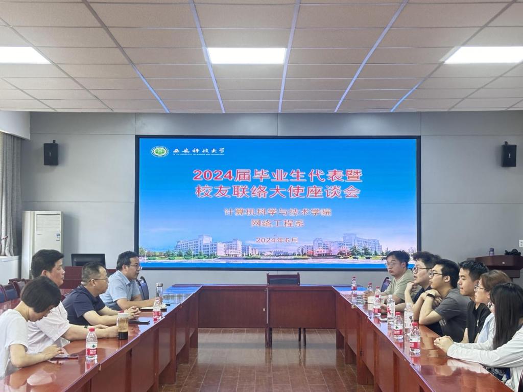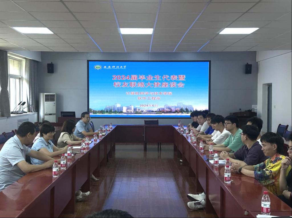 6月24日,计算机学院在骊山校园学院会议室召开2024届毕业生暨校友联络大使座谈会。学院党委书记李绥波、副书记郭胜忠、副院长金浩、各系主任、党支部书记、教师代表、2024届毕业生代表参加座谈会。