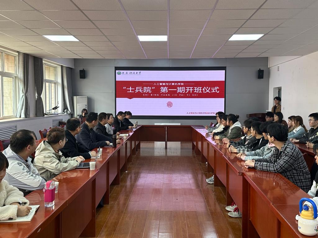 3月12日中午,人工智能学院在临潼校区骊山校园举行“士兵院”训练营项目第一期开班仪式。西安云锦汇信息科技有限公司总经理方阳、副总经理孟宪举,人工智能学院学院党委书记李绥波,“成长护航工作室”运行总监、副教授靳玉萍,企业培训讲师、辅导员代表、就业服务部学生代表、23名参训学员参加开班仪式。人工智能学院党委副书记郭胜忠主持活动。