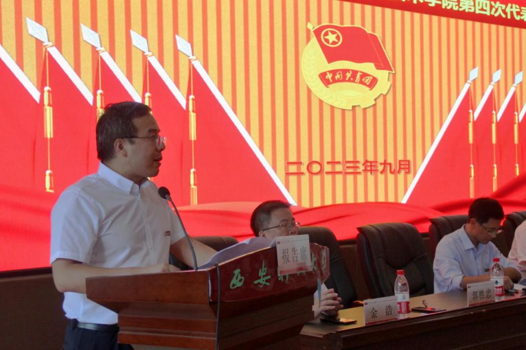 随后,学院党委书记李绥波代表学院党委向大会的胜利召开表示热烈祝贺。他指出,这是星空体育中国官方网站全体团员和广大青年学生政治生活中的一件大事,是承前启后、继往开来的一次青春盛会。这次会议的召开必将对星空体育中国官方网站青年学生深入贯彻党中央关于团学工作的部署,提高星空体育中国官方网站团学组织的凝聚力和战斗力,充分发挥星空体育中国官方网站团学组织在改革发展中的主力军作用,具有重大而深远的意义。他表示,学院团委坚定政治方向、把握时代主题、锐意改革创新、全面从严治团,用实干彰显了“党有号召,团有行动”的赤忱担当。最后,他对学院共青团工作和青年学生提出三点希望。第一,坚定理想信念,筑牢初心使命的奋进之力。第二,保持奋斗激情,弘扬永久奋斗的优良传统。第三,勇担时代重任,展现强国有我的青春风采。