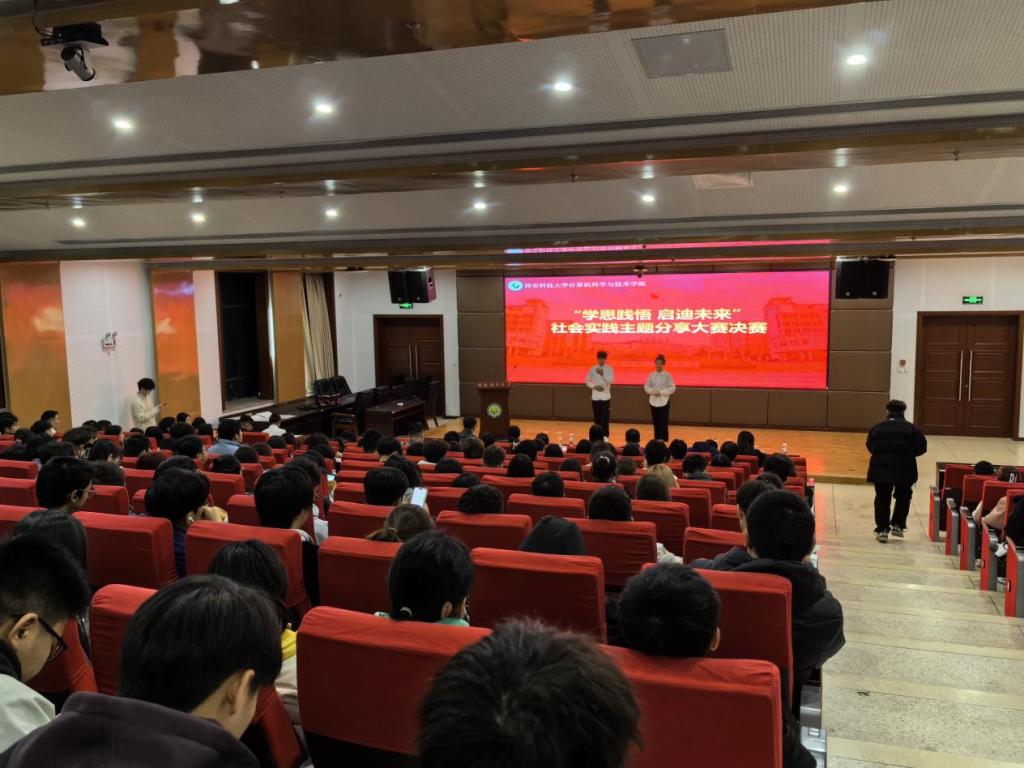 为深化大学生思想政治教育实践效果,促进青年学生在理论和实践相结合的过程中增长才干、健康成长,从而优质成才、全面成才,为就业创业做好准备,11月8日晚,计算机学院在临潼校区骊山校园煤炭科技楼二楼报告厅举办了“学思践悟 启迪未来”社会实践主题分享大赛决赛。计算机学院学工办主任、团委书记张晶晶,辅导员王超、宋永强、王兰、张珍珍、鞠纪元、曹莉担任决赛评委,共有来自不同年级和专业的10位同学参加决赛,300余名同学观摩了比赛。
