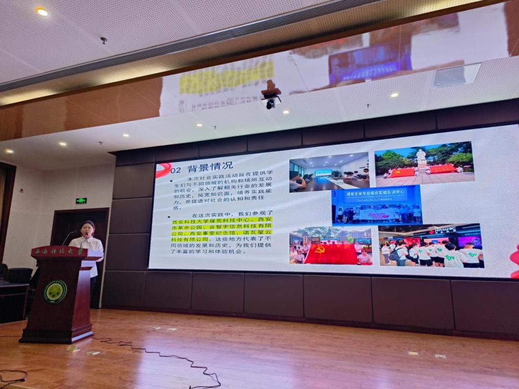 在比赛现场,同学们深入挖掘实践本质,分享个人在暑假实践期间的所思、所闻、所感,通过自身的实践经历,向大家分享专业知识技能在实习公司工作中的应用,计算机类专业大学生的就业途径与方向选择,大学生与乡村振兴,社会公益事业工作感悟以及红色教育之旅等各类社会实践内容。