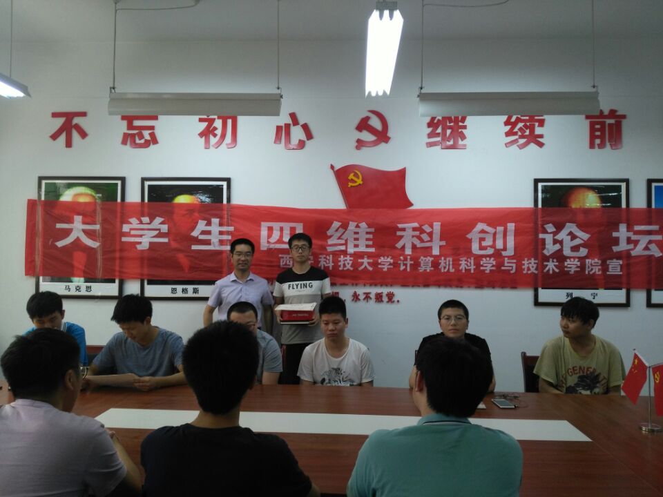 大学生四维科创论坛是计算机学院着力培育和打造的一项重要科技创新育人品牌项目,该项目主要通过选拔朋辈榜样、招募朋辈受教育者,进而从思想引领、学业引领、就业引领、心理引领开展“朋辈榜样引领”工程。旨在发挥获奖优秀学生的朋辈示范和榜样引领作用,以学生的视角来讲述他们成长成才道路上的体会与感悟、经验与启示,为学弟学妹们释疑解惑、导航青春,进一步拓宽了大学生思想政治教育渠道,强化和落实了朋辈榜样的示范引领作用。