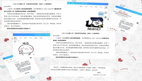 课程资源建好了,秦昳老师想到应尽快与学生建立关系做好课前沟通,于是建立课程QQ群,找到班长邀请同学们加入,逐一进行学生确认。在课程QQ群里给屏幕另一端的学生们写了“2月14日情人节给学生们的一封信(上课说明)”告知了同学们教学方案让他们安心在家学习。